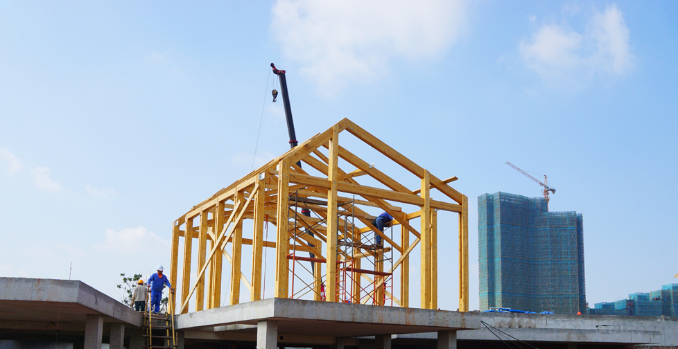 工廠(chǎng)工業(yè)化預(yù)制擁有完整的木材干燥、木材加工、膠合木、